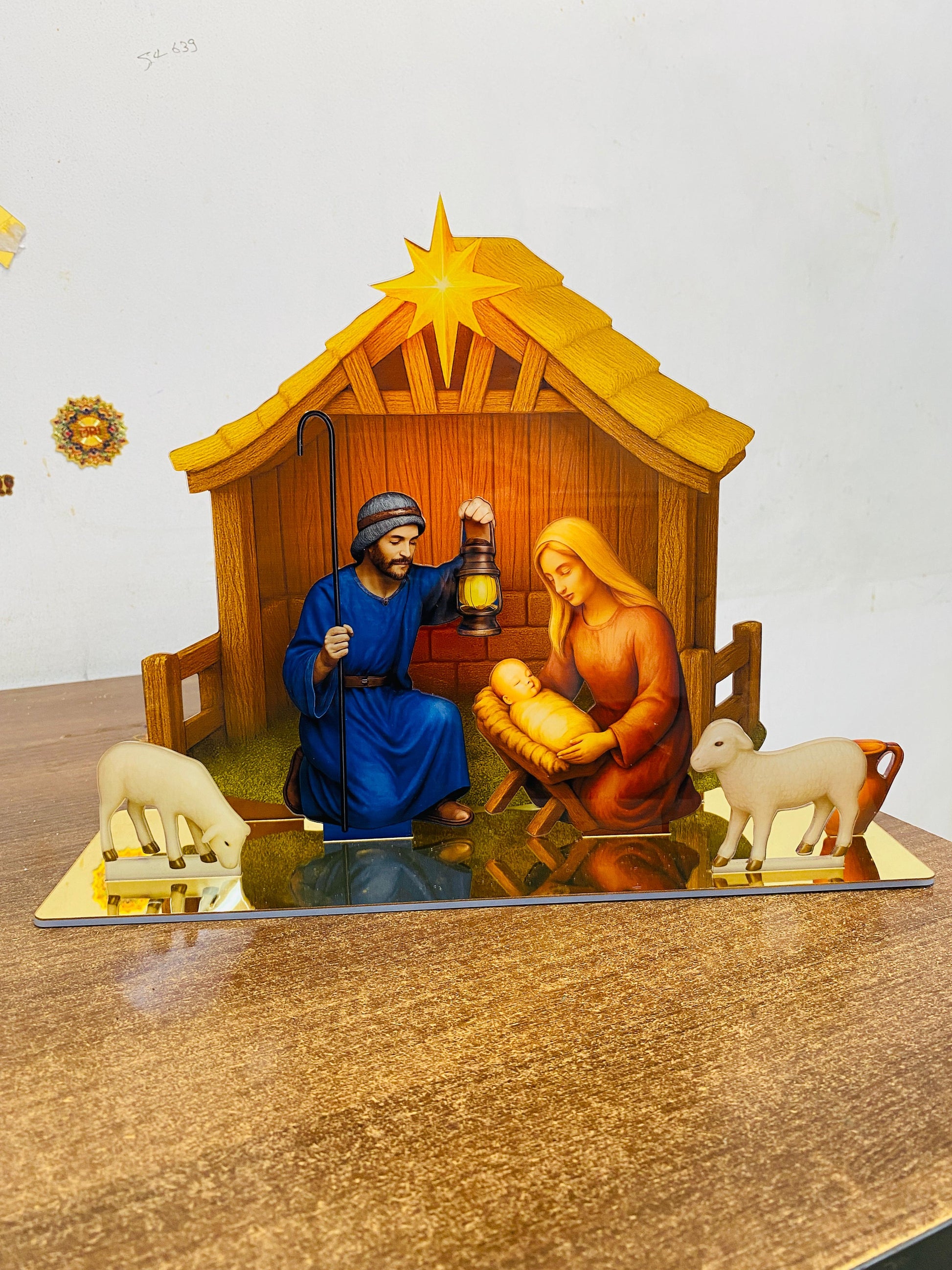 Celebrate the true spirit of Christmas with this elegant Acrylic LED Nativity Scene Display — a heartwarming depiction of the Holy Family that radiates peace, love, and light. Crafted from premium clear acrylic, it features a beautifully printed 3D effect of the Holy Family with baby Jesus, surrounded by gentle animals under the shining Bethlehem star.